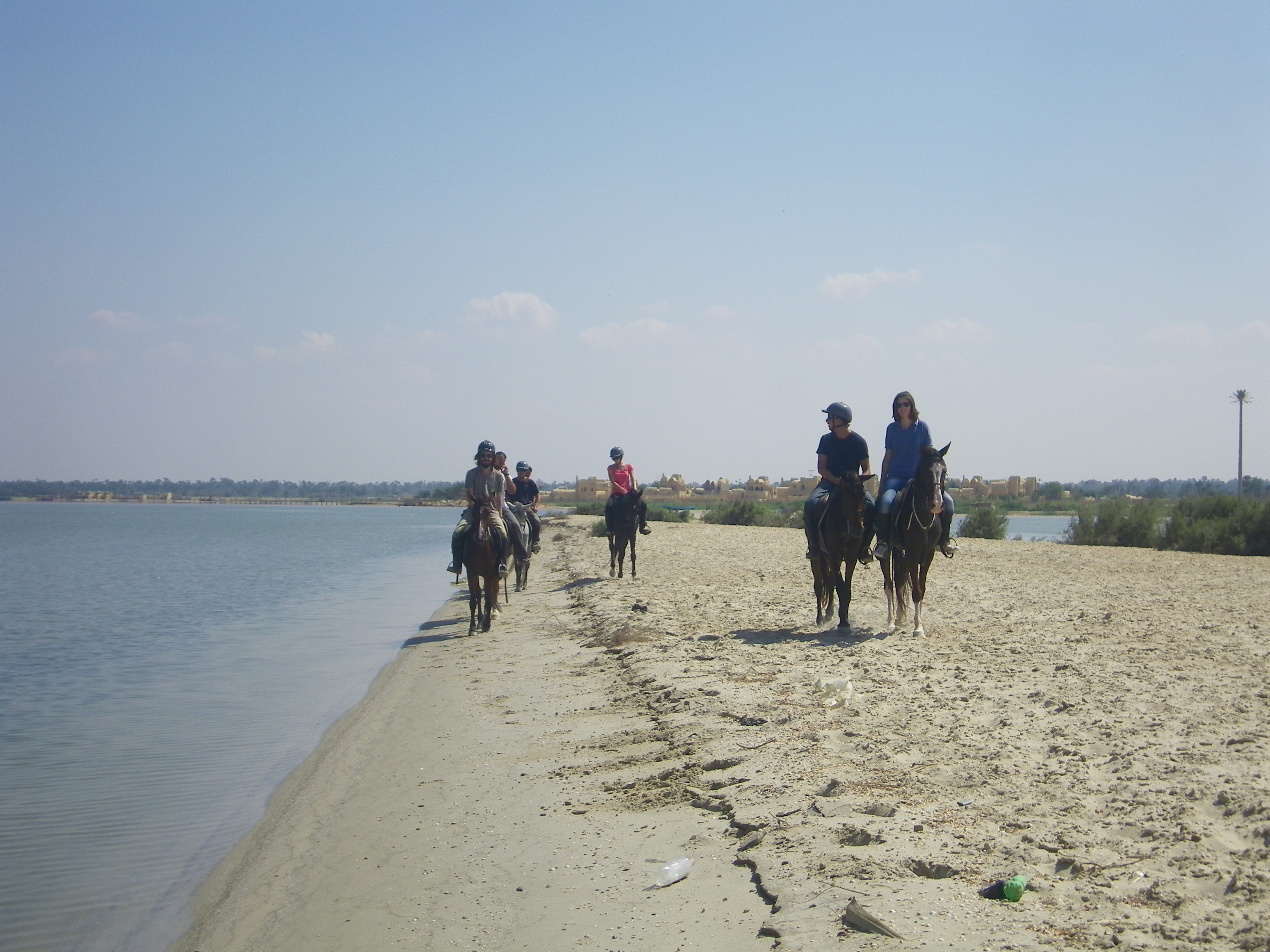 Nous avons loué les services des « Chevaux du lac », centre équestre situé sur le chemin de l’écolodge Zad el Mosafer. Le gérant parle anglais, est également francophile et soigne très bien ses chevaux. Il s’adapte aux niveaux des cavaliers, à la durée de ballade souhaitée, et reste discret mais présent. Sur le chemin, on rencontre des oiseaux, parfois un âne ou une vache en vadrouille, des barques sur le lac, et … des mobylettes, qui saluent la compagnie d’amicaux et sonores coups de klaxons !