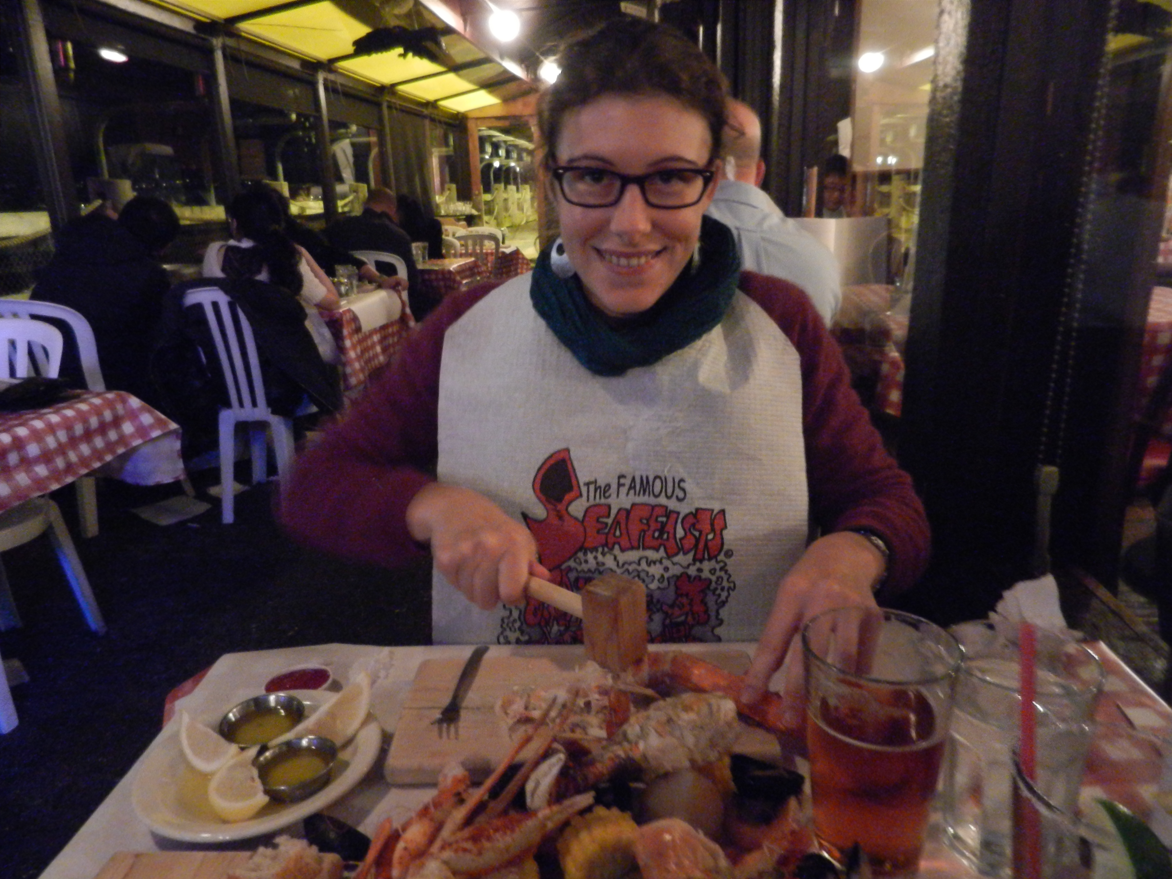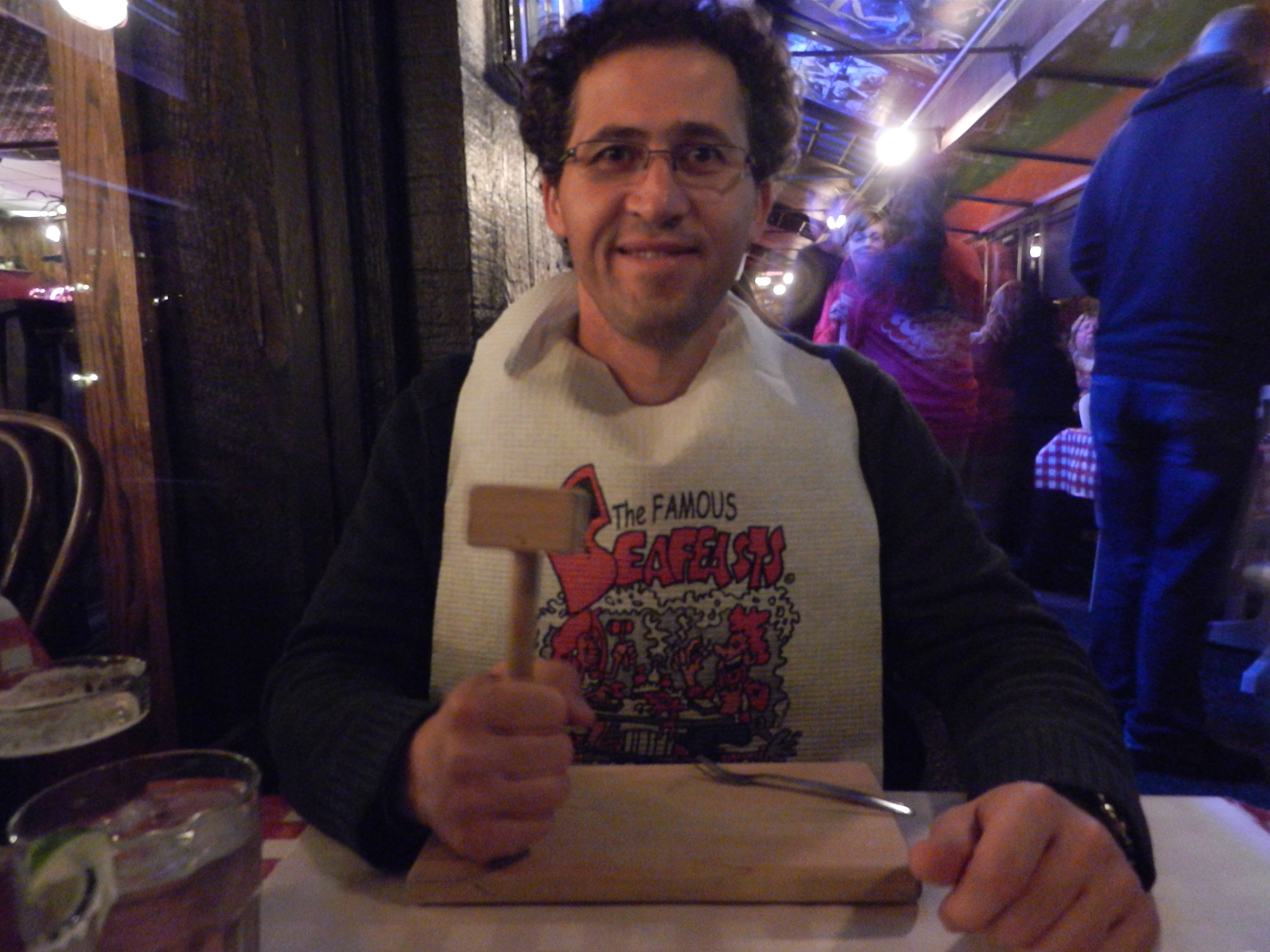 Nous avons attaché nos tabliers, saisi nos petits maillets, et le serveur a répandu sur la table une grande bassine de fruits de mer :