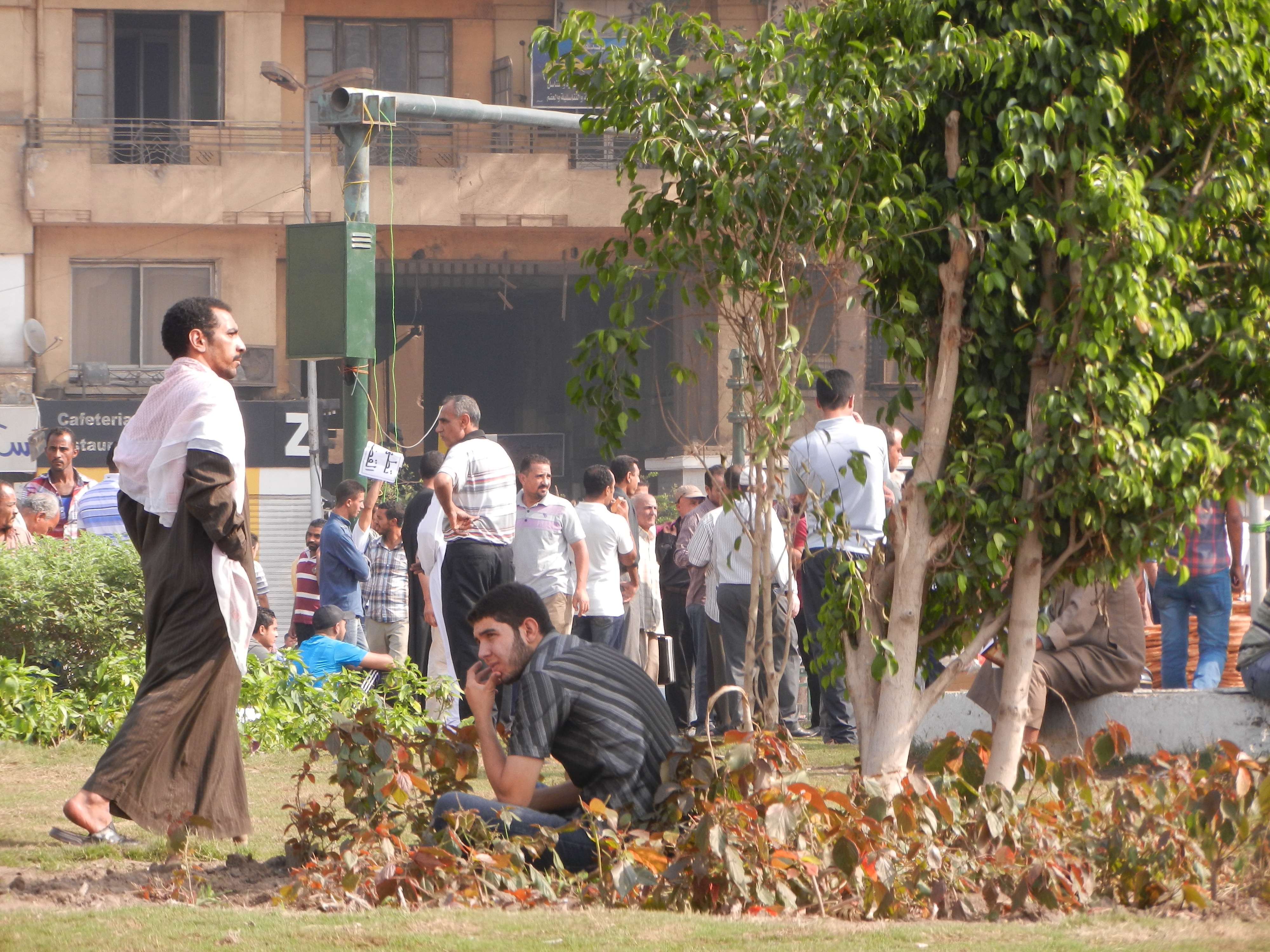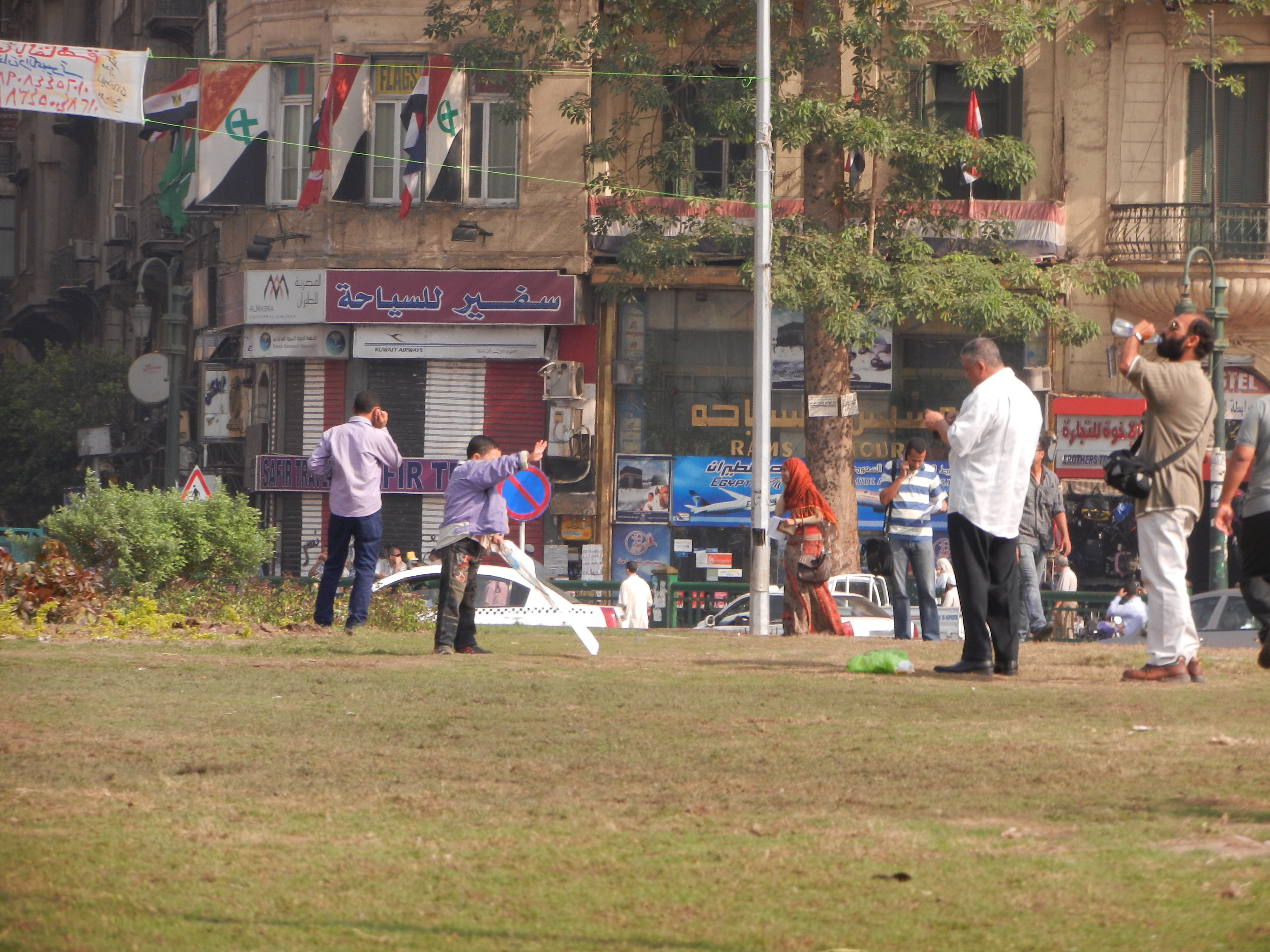 D’autres prennent des photos et des vidéos, jouent, ou prennent le frais sur les belles pelouses toutes neuves de la place Tahrir :