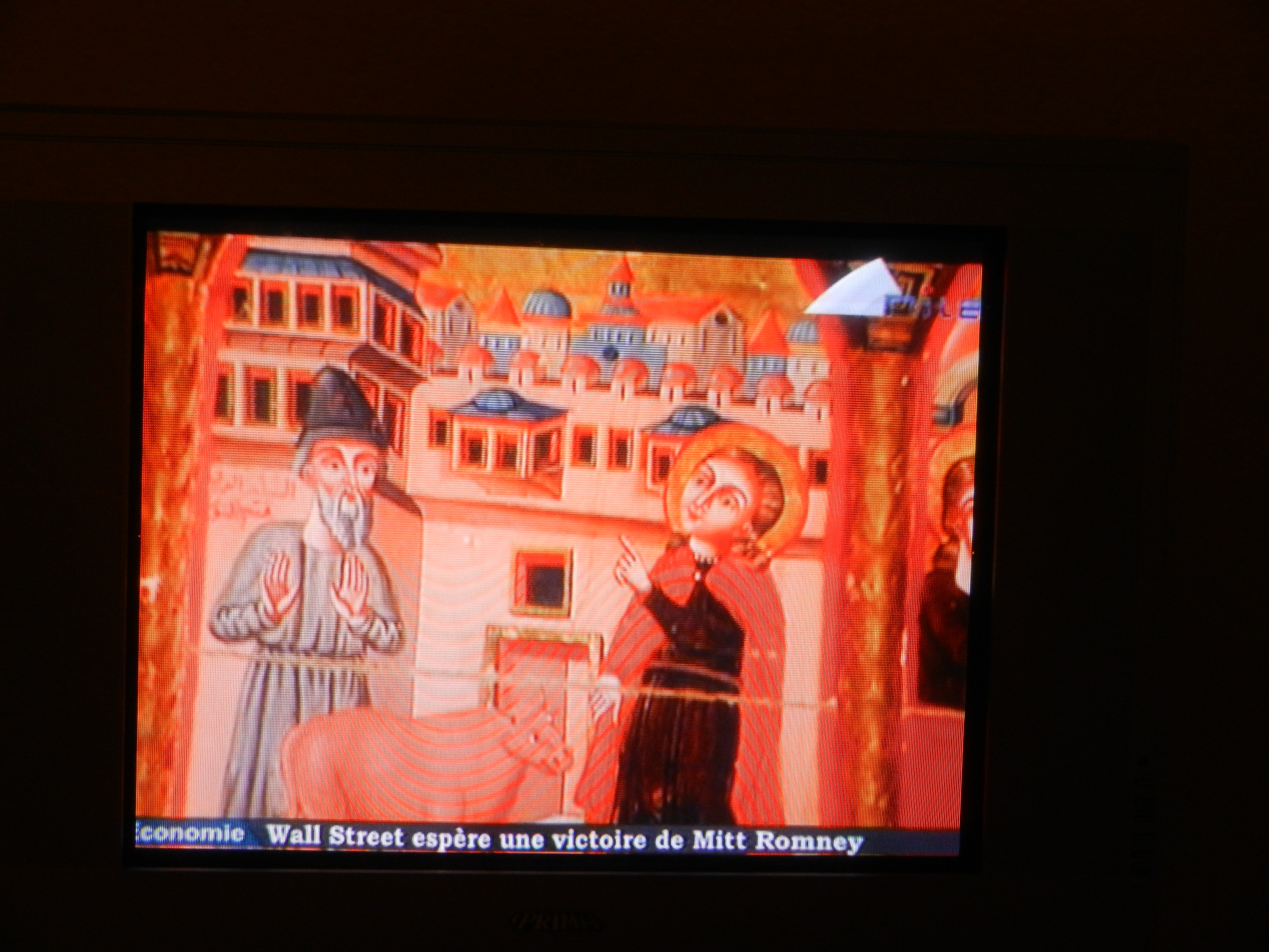 Et pour finir avant de craquer, un reportage culturel sur une église dans le vieux Caire copte, avec toujours ces bandeaux d’information qui font des supers sous-titres (ici « Wall Street espère une victoire de Mitt Romney » ) !
