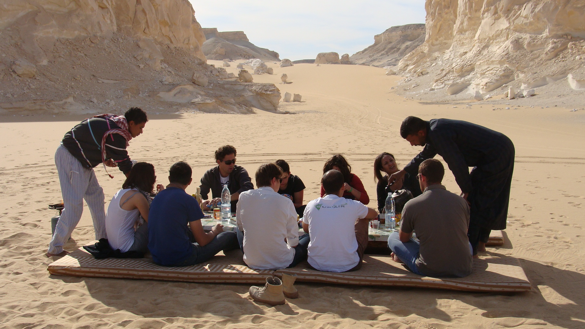 Avec un feu de camp , autour duquel, après le dîner, boire le thé à la menthe (très concentré et très sucré, dans de tout petits verres), et fumer la chicha: