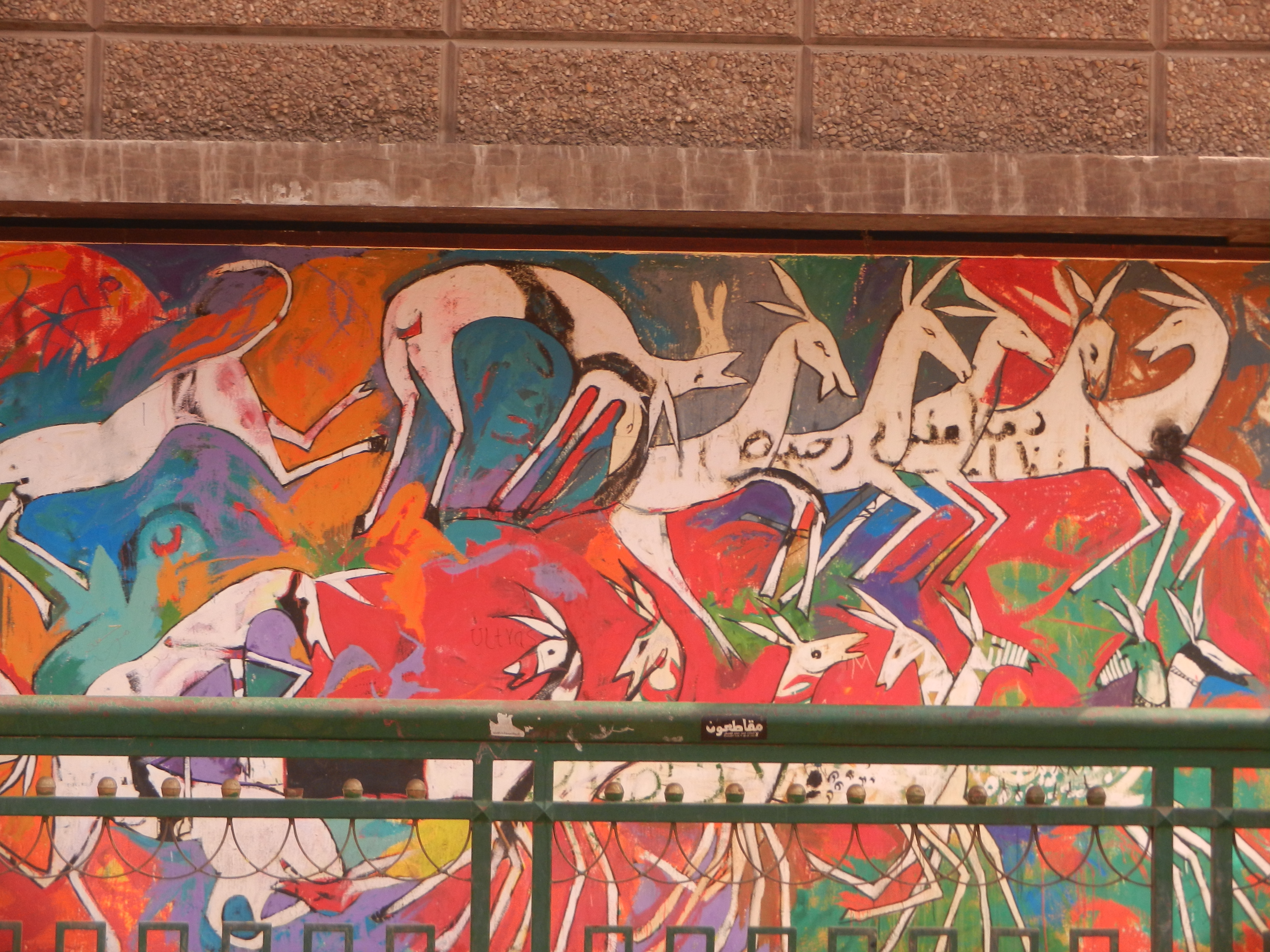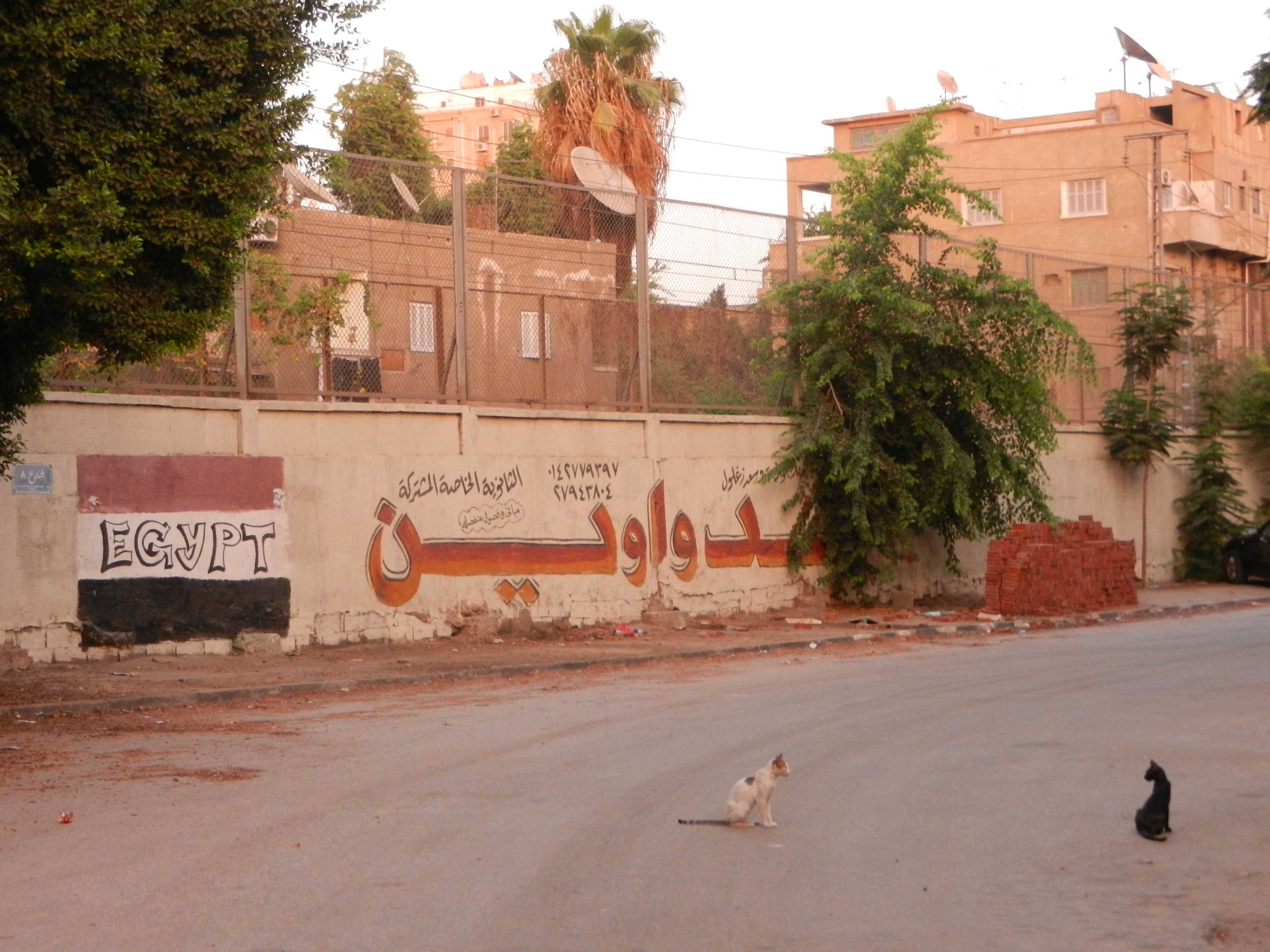 Le traditionnel tag de voie de métro, universel apparemment, avec les tout aussi traditionnels chats du Caire. Ici, à Maadi, tout près de notre rue :
