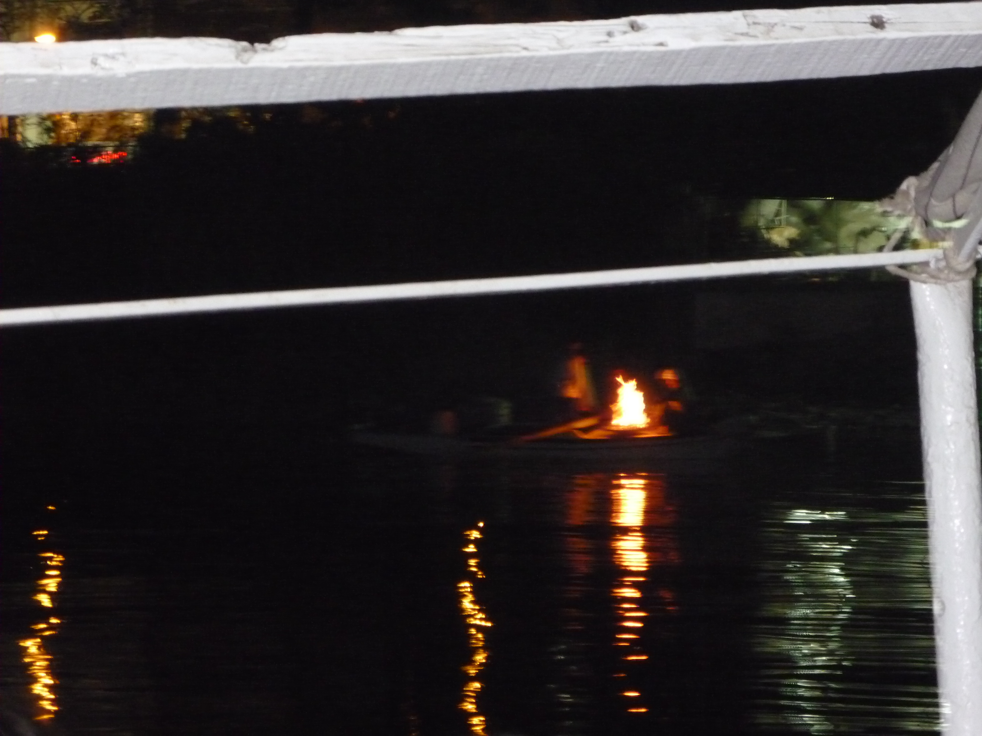 Parfois, c’est toute une famille qui y habite, comme ici, sur ces deux barques croisées vendredi dernier…