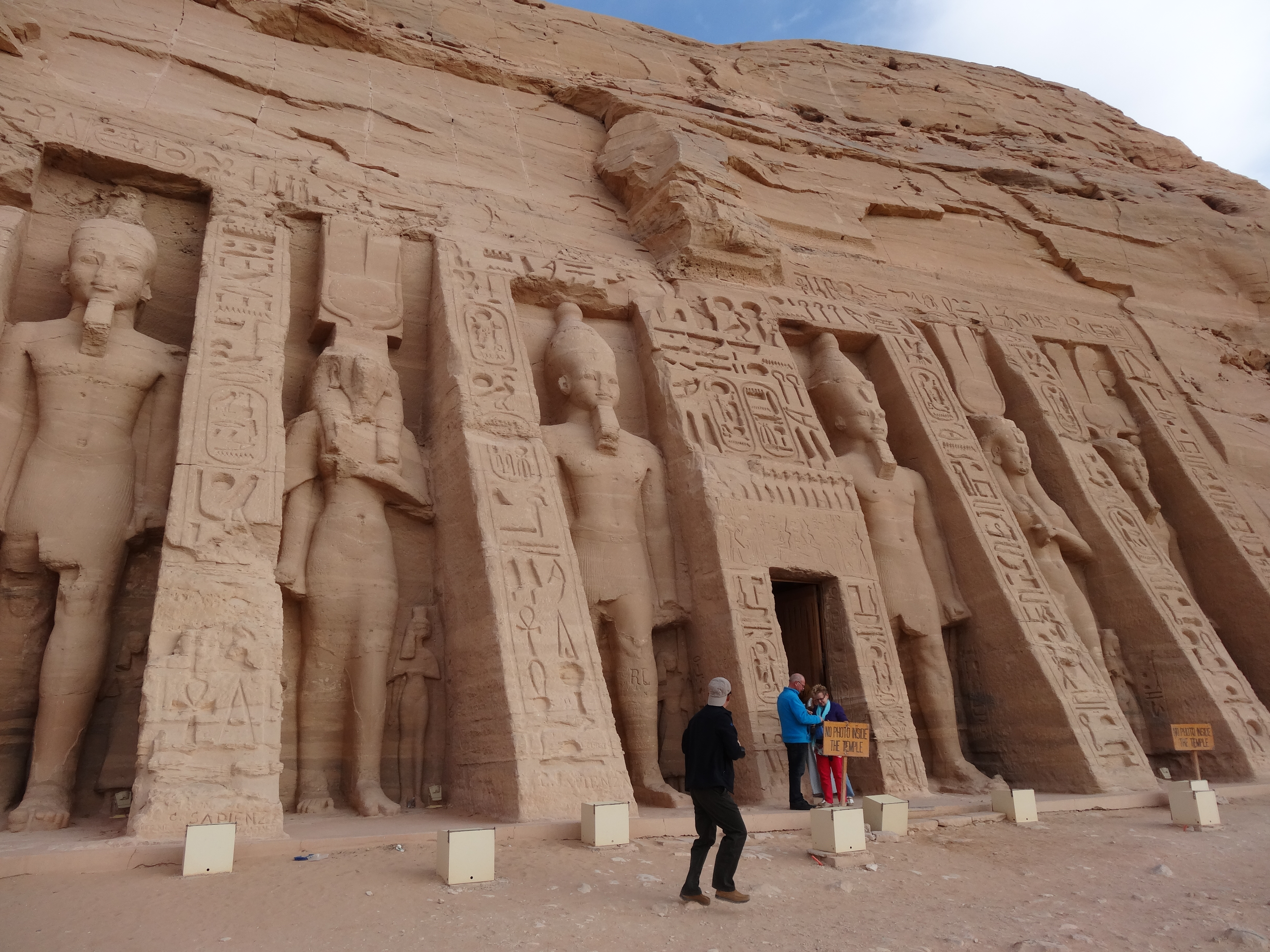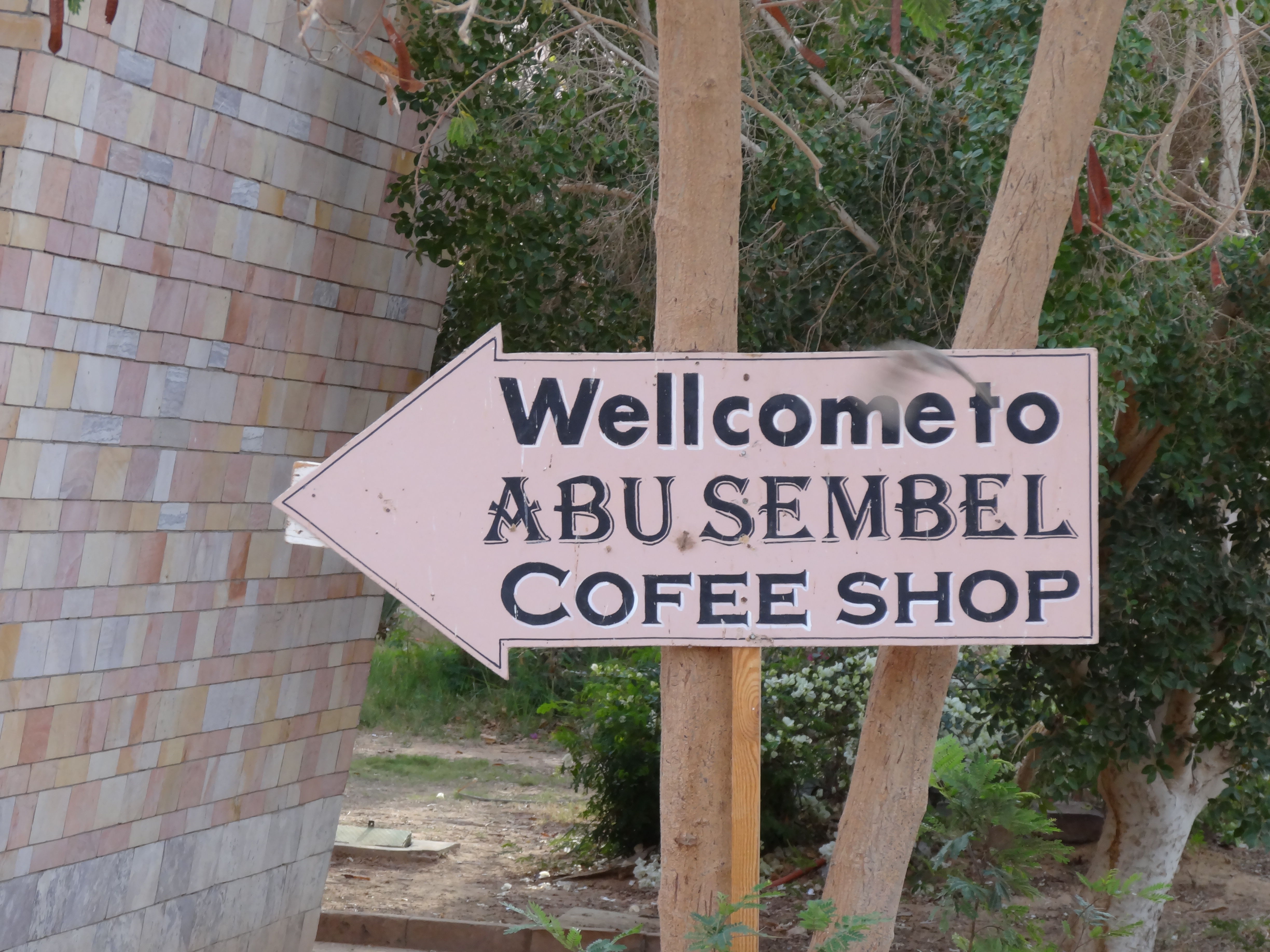 Enfin, vers 8h, bienvenue à Abou Simbel ! (L’orthographe olé olé de l’Egypte nous fait toujours rire, même si ça ne nous surprend plus.)
