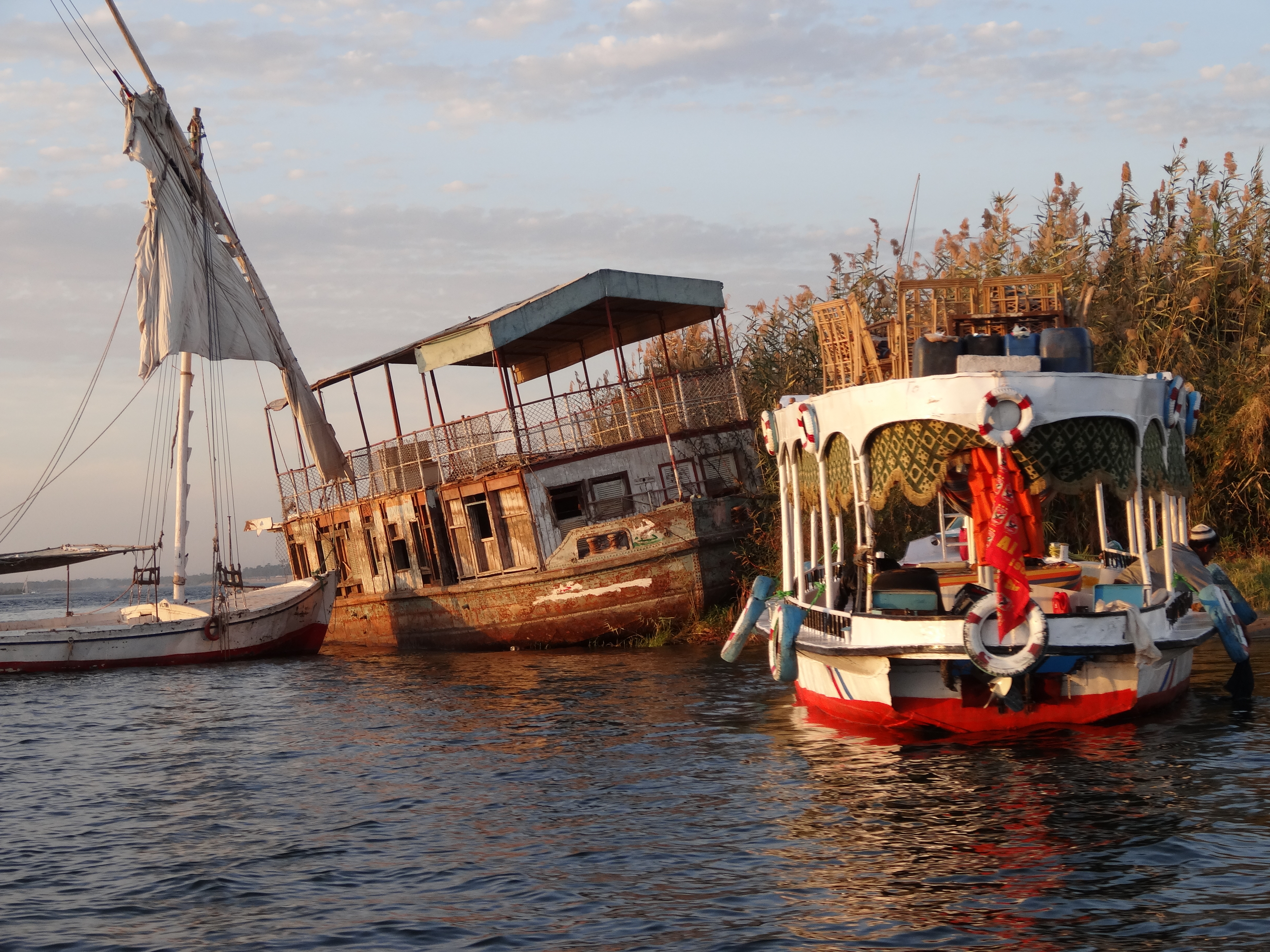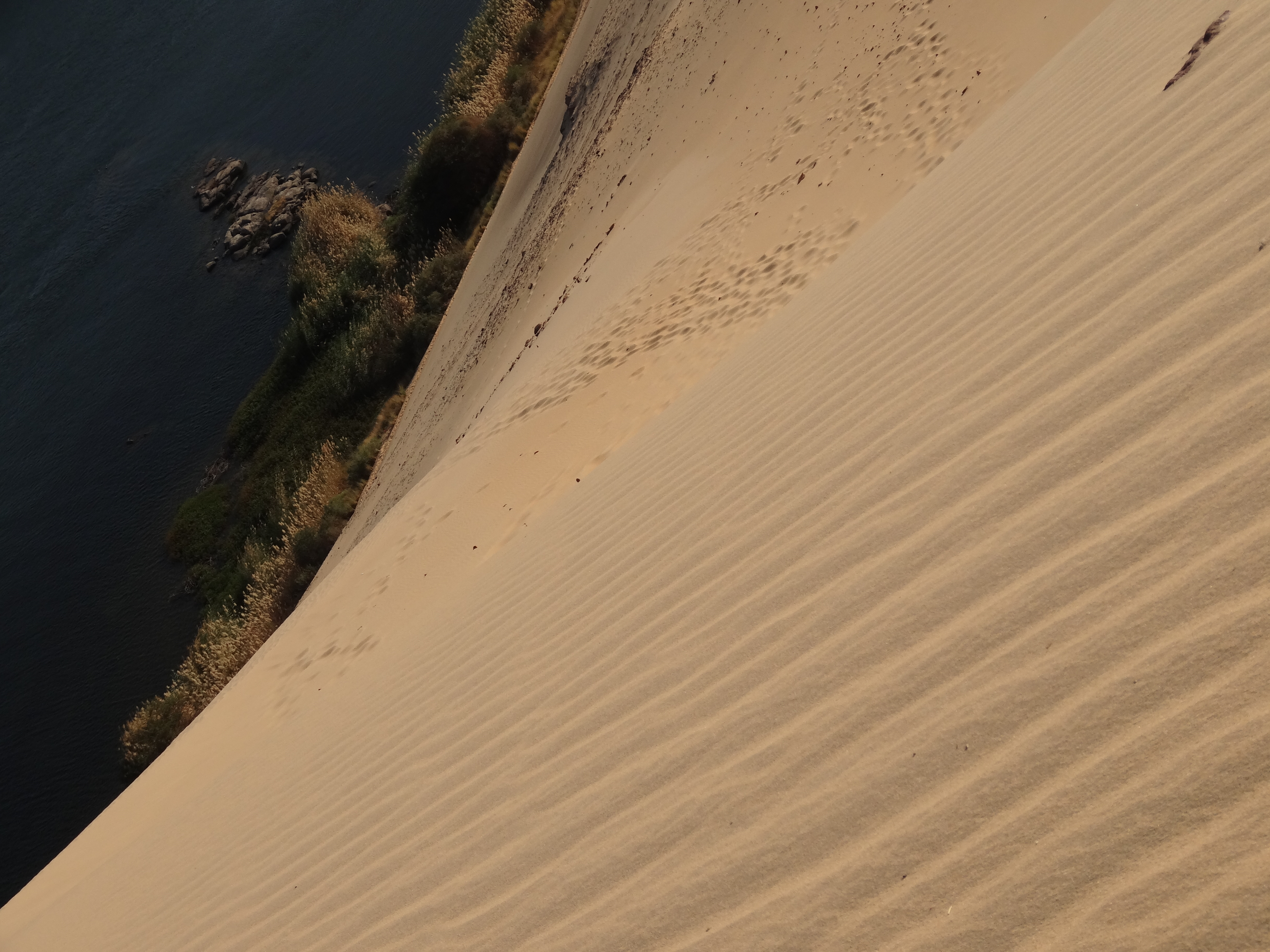 Nous faisons des paris sur le nom des arbres et des plantes que nous croisons, Anaëlle s’aperçoit qu’elle a un trou énorme dans sa chaussure et qu’elle récupère dedans la moitié du sable de la dune, et je me frite ensuite avec le « guichetier » du ferry, qui essaie de nous faire payer le triple du prix normal. Isolés comme nous l’étions de ce côté du Nil, en fin de journée, je ne voulais pas qu’il pense que nous allions nous laisser faire… Aucun de ses très nombreux acolytes n’a bronché et nous avons récupéré notre monnaie…