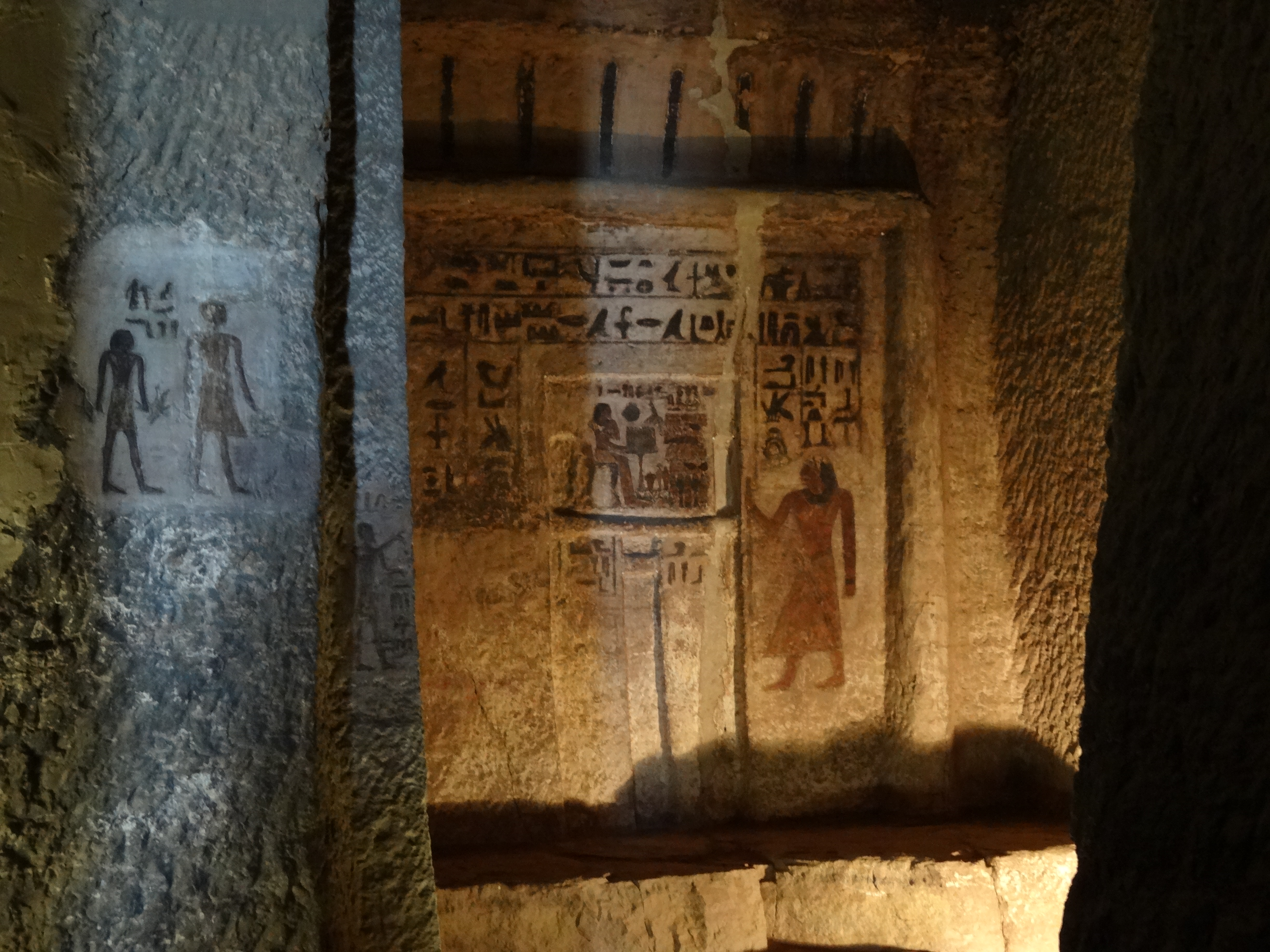 Nous devons nous faire ouvrir les entrées par les guides, qui ont leurs habitudes, et qui rechignent un peu à nous montrer l’ensemble des tombes ouvertes à la visite. Heureusement, Julian était déjà venu, et connait les tombes visitables. Nous sommes accompagnés par un anglais d’un certain âge, et trois jeunes allemands.