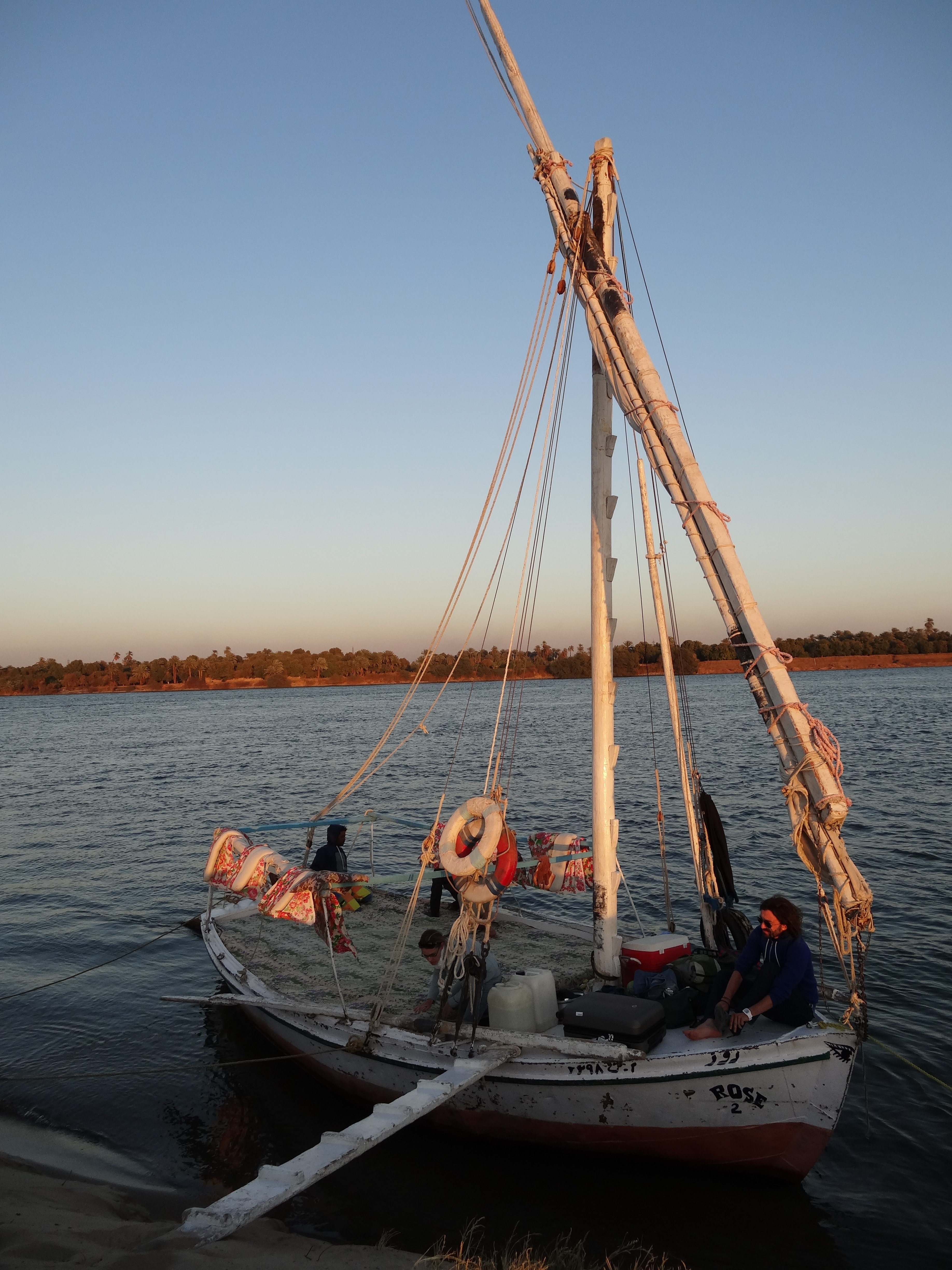Du dimanche matin au mardi matin, nous avons vécu sur une felouke, descendant le Nil depuis Assouan, et jusqu’à Kom Ombo. Nous étions 5 passagers, accompagnés par Ali (http://aswanfeluccatours.com/), le capitaine, et Mohamed, son équipier.