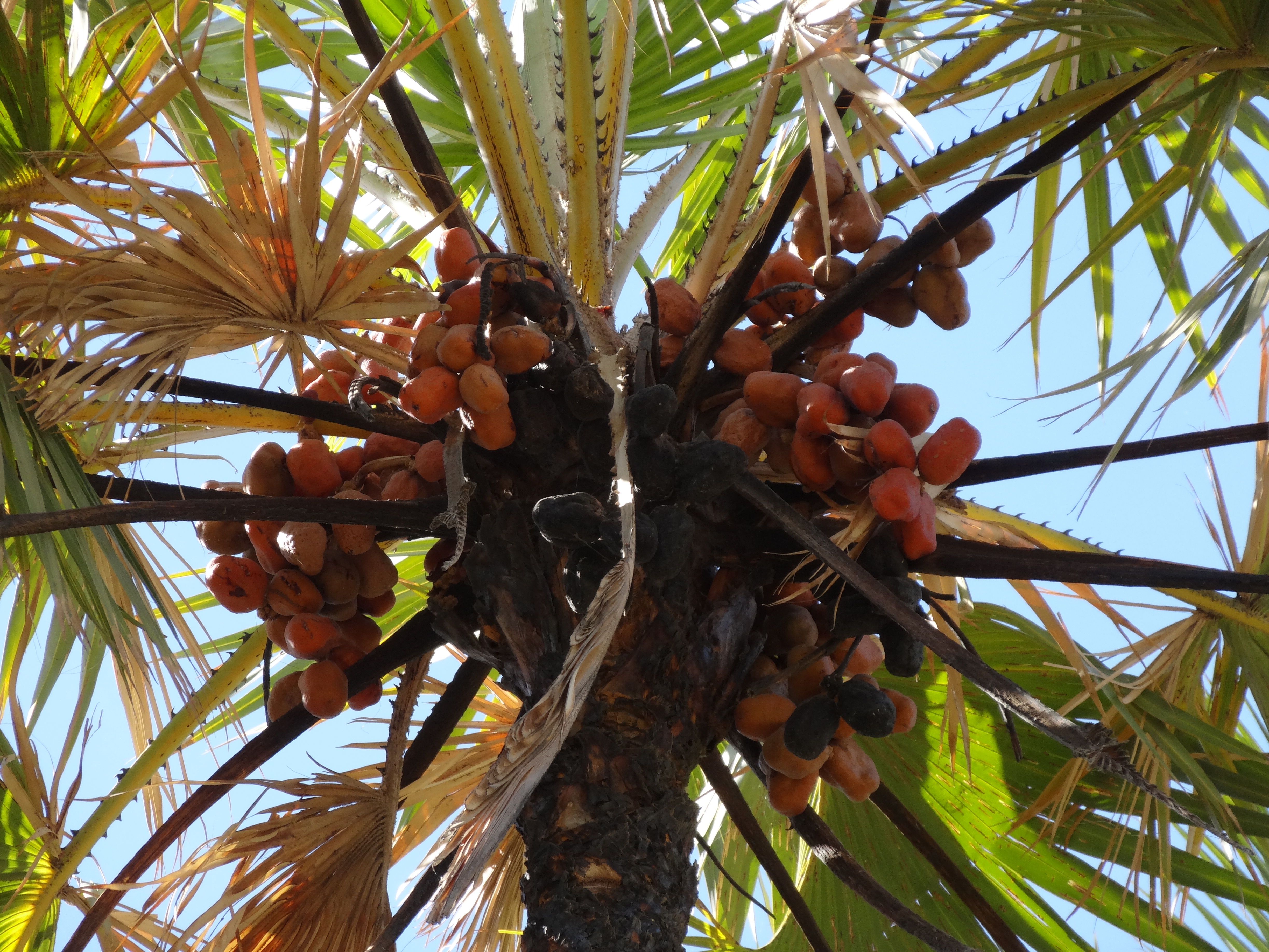 Nous étions très intrigués par un drôle de fruit de palmiers, de couleur orange, gros comme une prune, très dur, et entouré d’une sorte de bogue, resemblant vaguement à une bogue de noix.