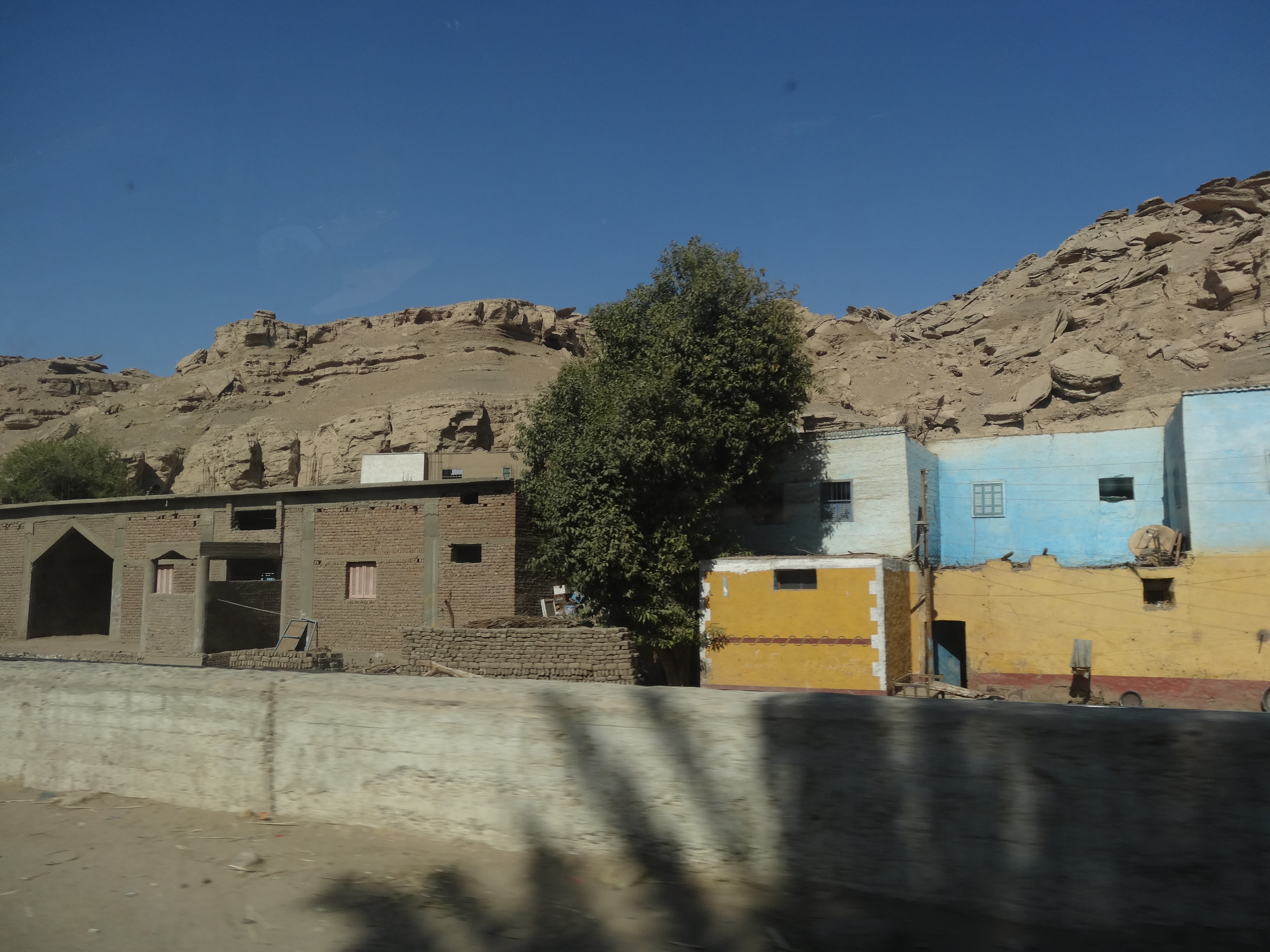 Une fois débarqués de la felouke, nous sommes pris en charge par un mini-bus qu’Ali a réservé pour nous. Le chauffeur nous emmène visiter Edfou et Kom Ombo, nous faisant « promettre » à chaque fois de rester seulement 30 minutes (habitués à l’Egypte, nous savons qu’il ne nous tiendra pas rigueur de dépasser allègrement le délai prévu. Et puis, un rien nous intéresse, un hiéroglyphe; une sauterelle…)