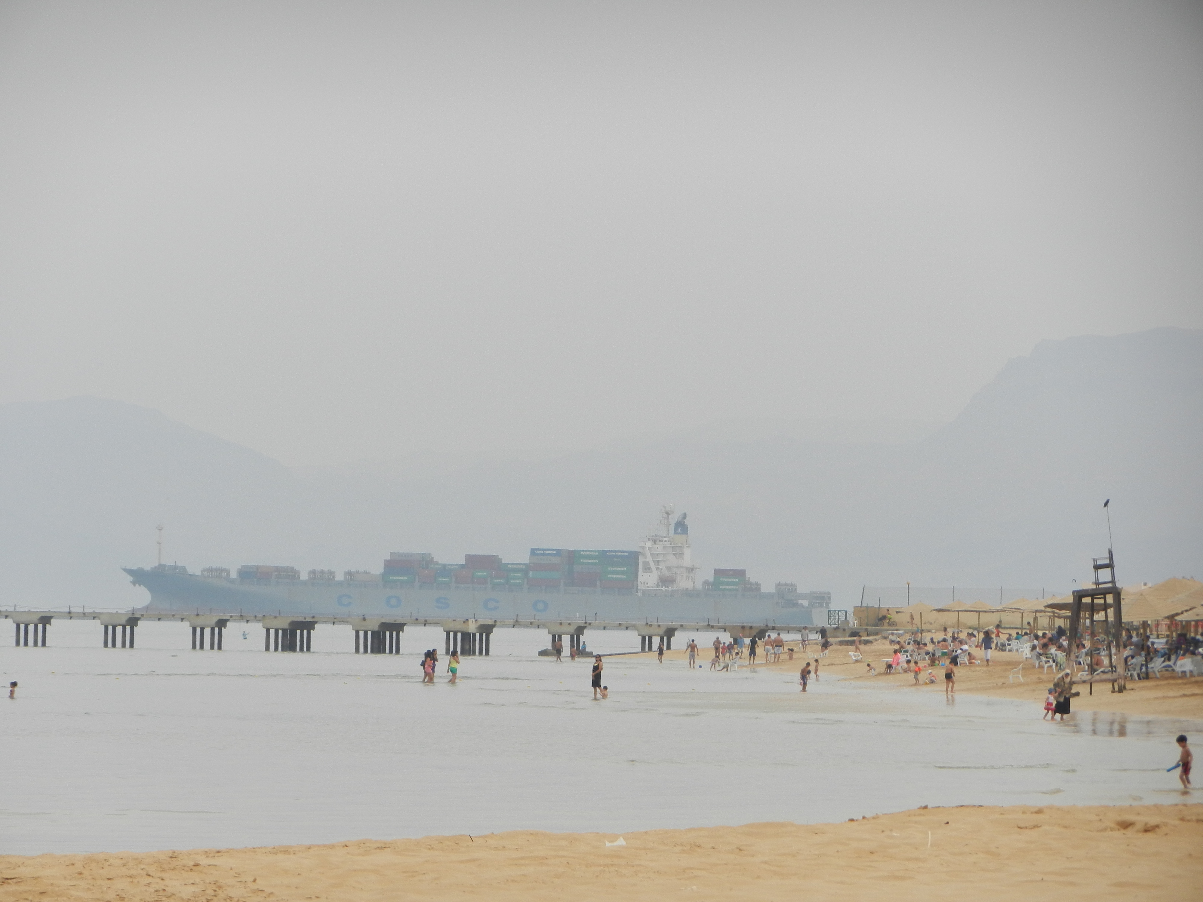 Parfois, on voyait passer un cargo qui se dirige vers le canal de Suez.