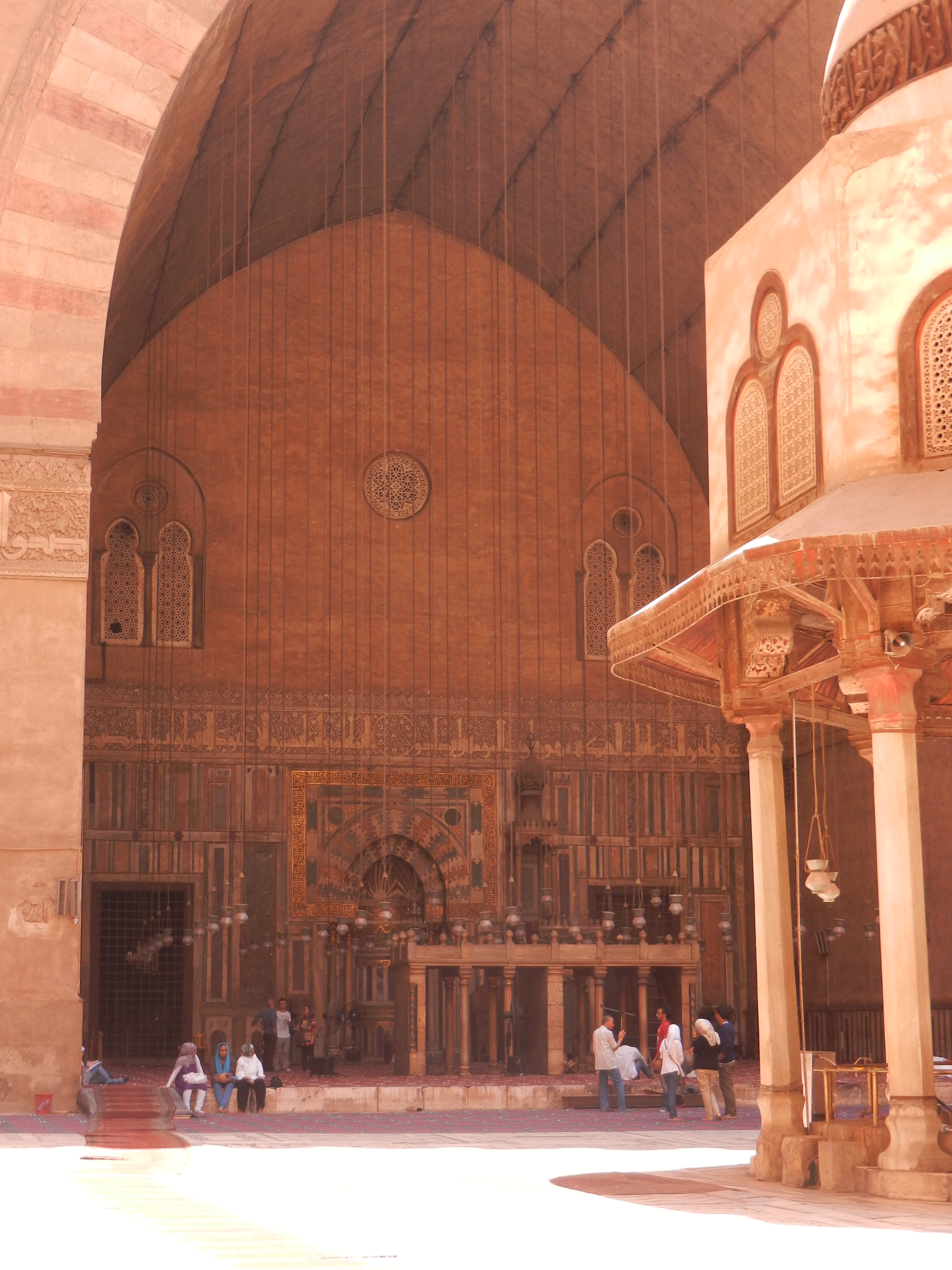 Comme dans toute mosquée, il vous sera demandé à l’entrée de Sultan Hassan de vous déchausser et d’enfiler des chaussons de tissus. Par ailleurs, on demandera aux femmes d’enfiler une cape verte, et d’avoir la tête couverte.