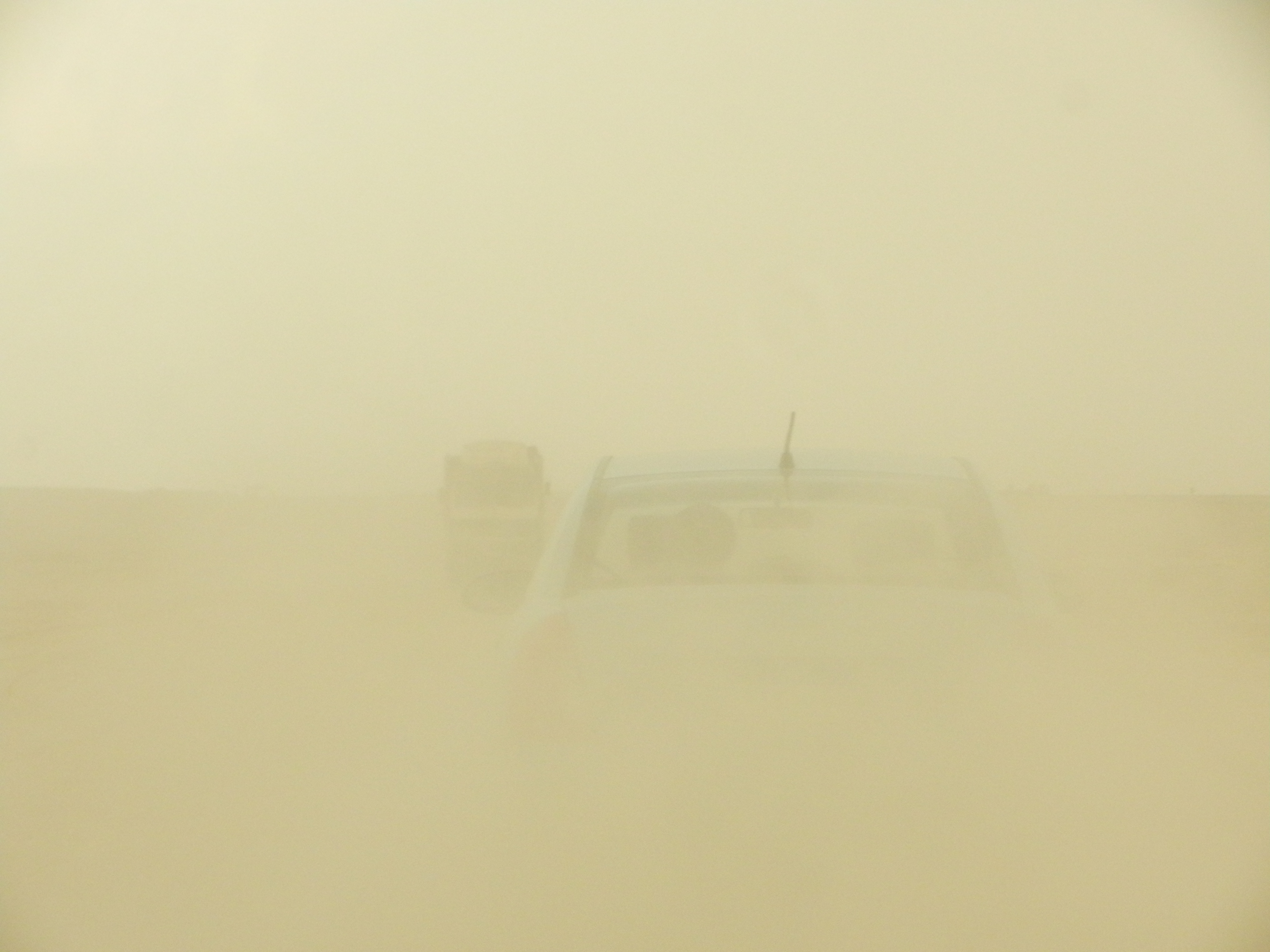 Sur le chemin, nous avons eu un peu de poussière, et nous avons eu deux voitures sur trois bloquées dans le sable. D’où l’intérêt de partir en convoi !