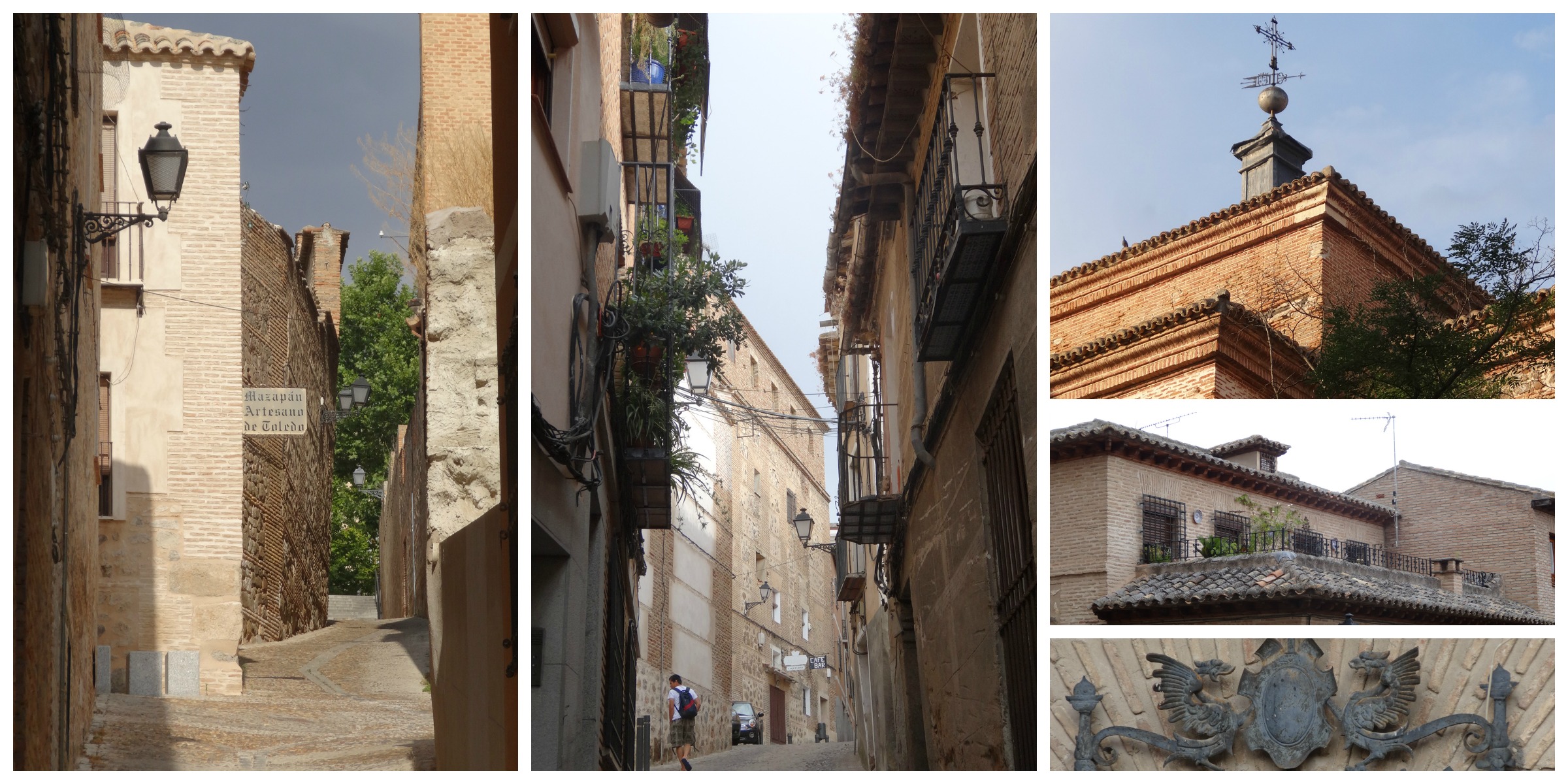 La cathédrale (débutée au XIIIème siècle) est construite selon le style gothique français, plutôt flamboyant. La vieille ville de Tolède est médiévale, on s’y promène dans des ruelles étroites et pentues. On trouve parfois au détour d’une rue de petites céramiques bleues avec des signes hébreux. La communauté juive d’Espagne a été l’une des plus grandes et influentes de la Diaspora et plusieurs conciles ayant statué sur la situation de cette communauté ont eu lieu à Tolède.