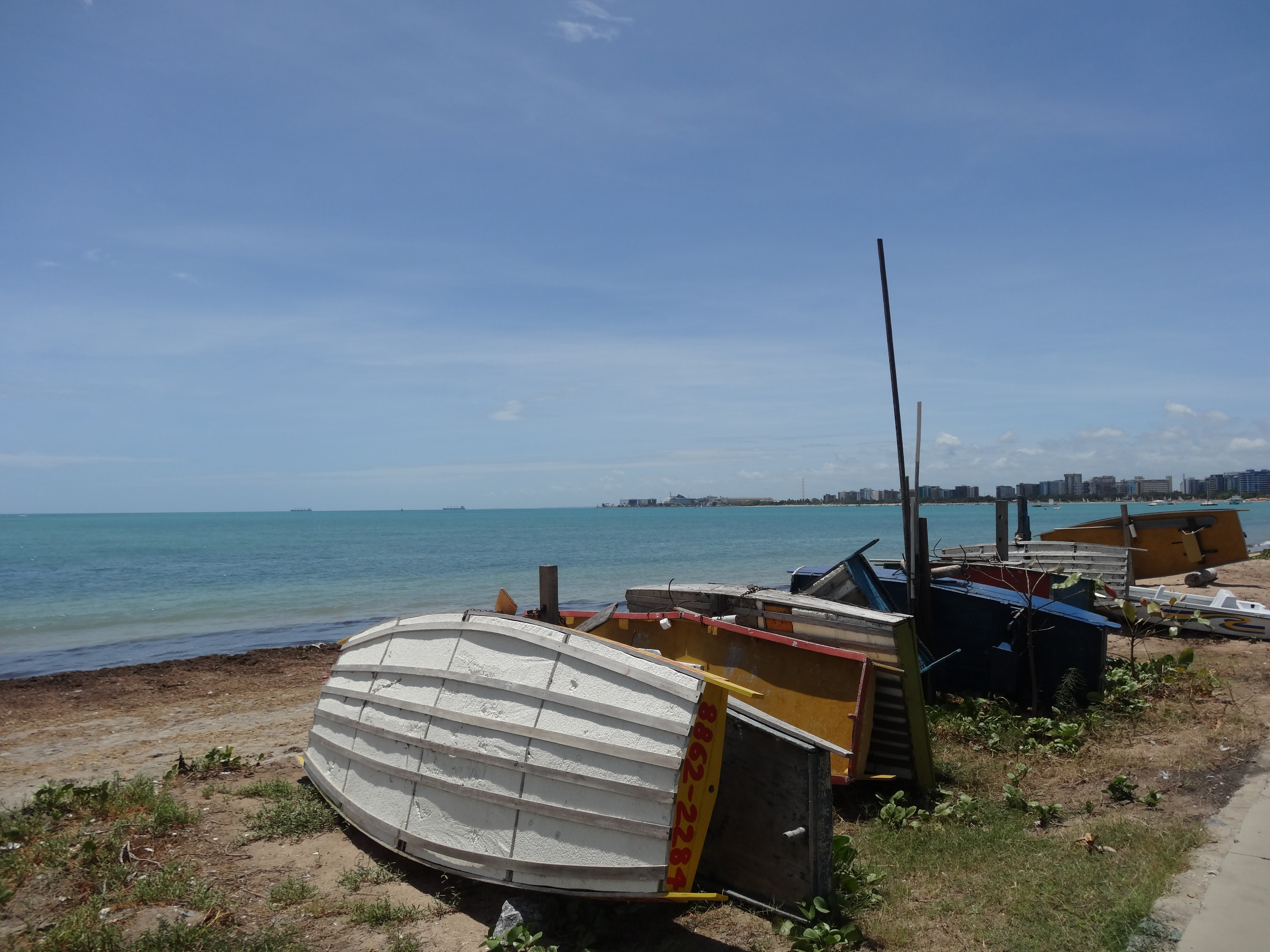 D’après nos notes d’avant départ, les plages de Maceio sont très réputées, et la route côtière qui part vers le nord aussi. Il semble qu’à marée basse, les pêcheurs puissent emmener les touristes sur les bancs de sable de la lagune dans leurs jandagas (radeaux à balancier). En décembre, le Festival de la Mer attire des foules de touristes. Maceio compte 880 000 habitants, elle aurait été fondée en 1815, suite à l’exploitation de la canne à sucre alentour. Elle est la capitale de l’Alagoas. Les édifices réputés de la ville sont le musée d’art Fundaçao Pierre Chalita, église Bom Jesus dos Martirios et la Catedral de Nossa Senhora dos Prazeras.