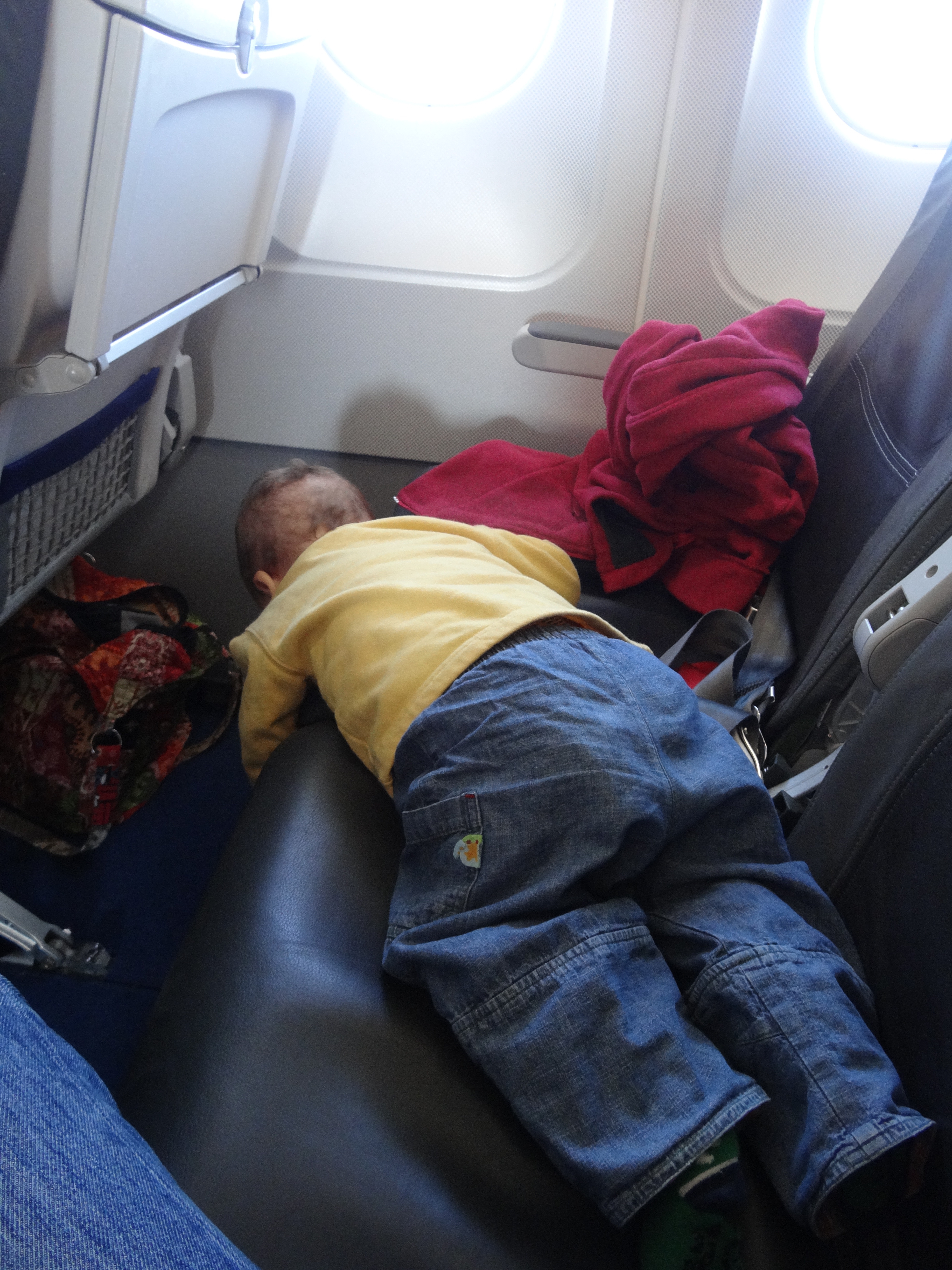 Le trajet s’est plutôt bien passé, puisqu’Adrien a dormi presque tout le vol. Une hôtesse est venue nous demander à 23h (?!) si nous avions besoin d’un petit pot pour le bébé.
